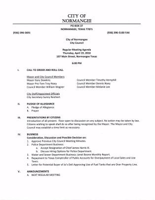 April 19, 2018 Agenda Pg. 1