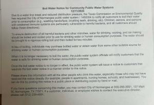 As a precaution, the boil water notice will remain in effect at least until Tuesday. This will allow time for samples to be sent for testing and for the City to receive the results.